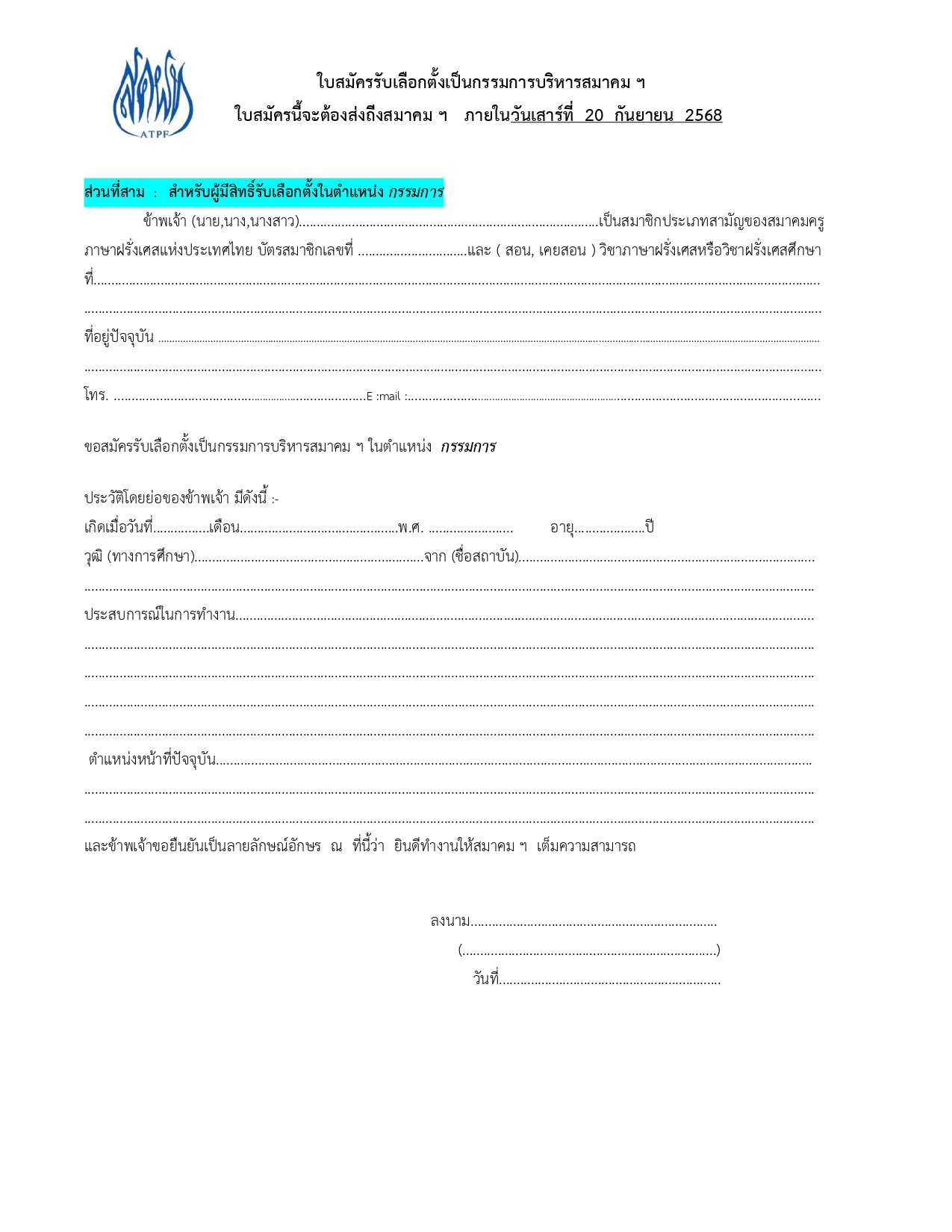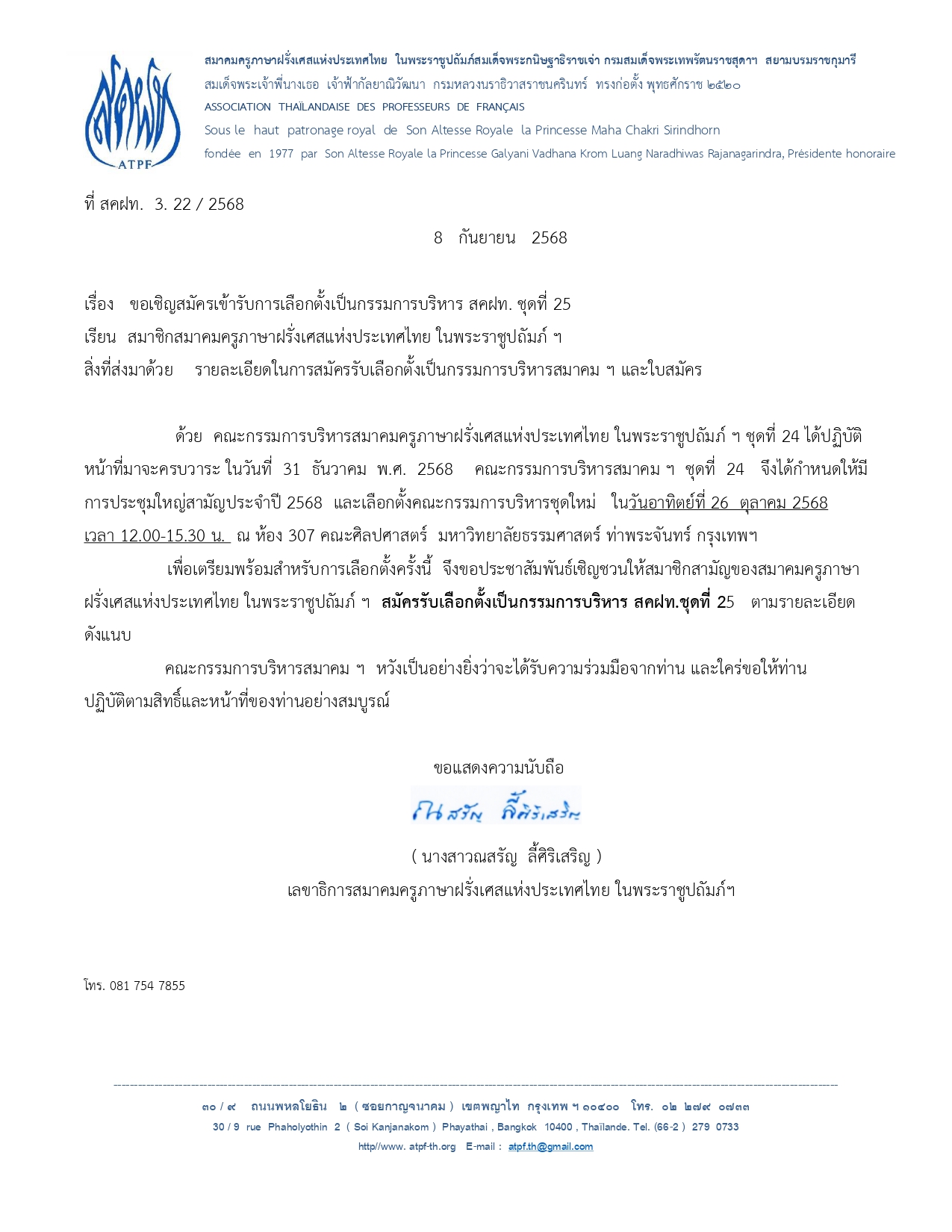 ขอเชิญประชุมใหญ่สามัญประจำปี 2568 และเลือกตั้งกรรมการบริหาร สคฝท. ชุดที่ 25