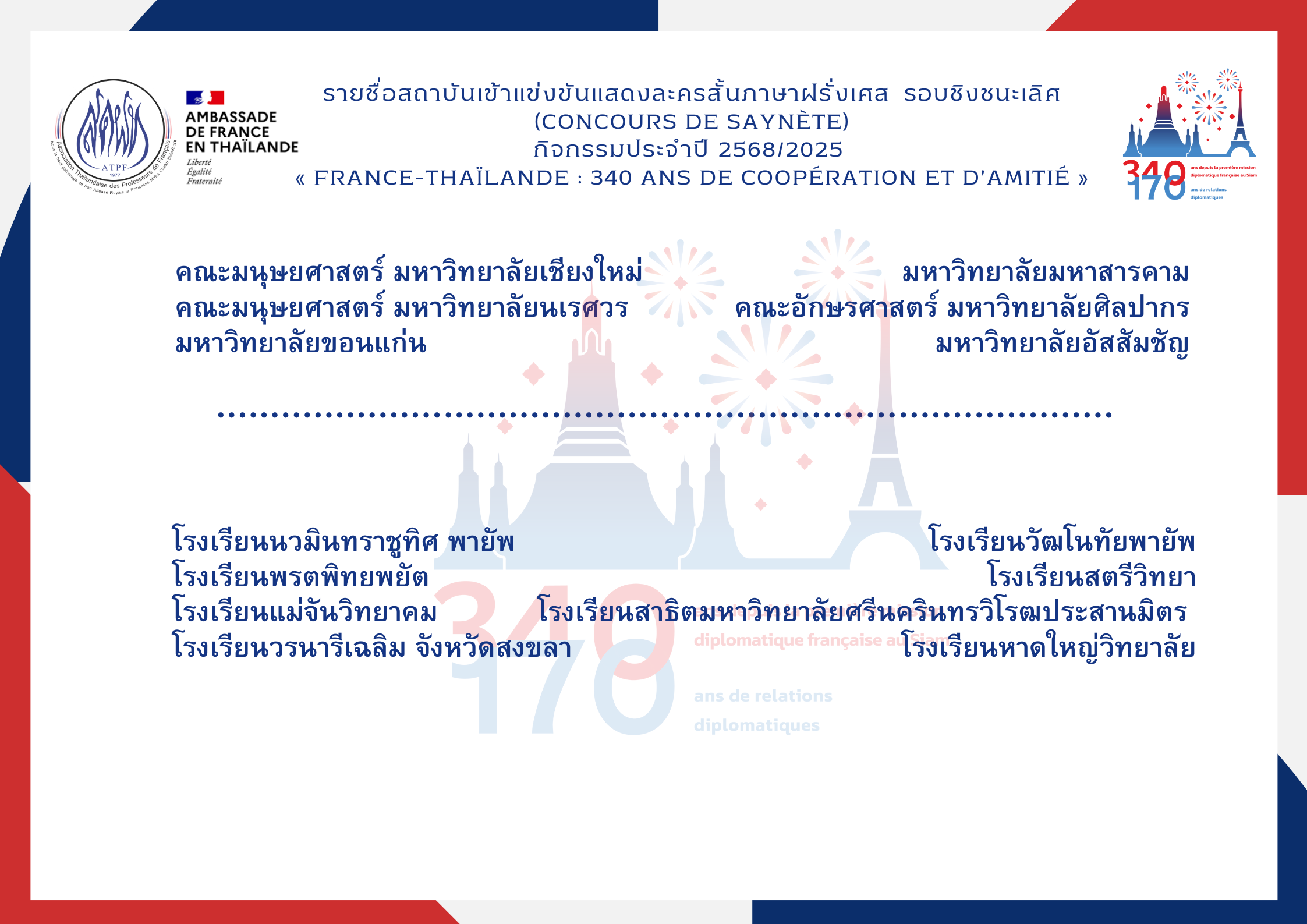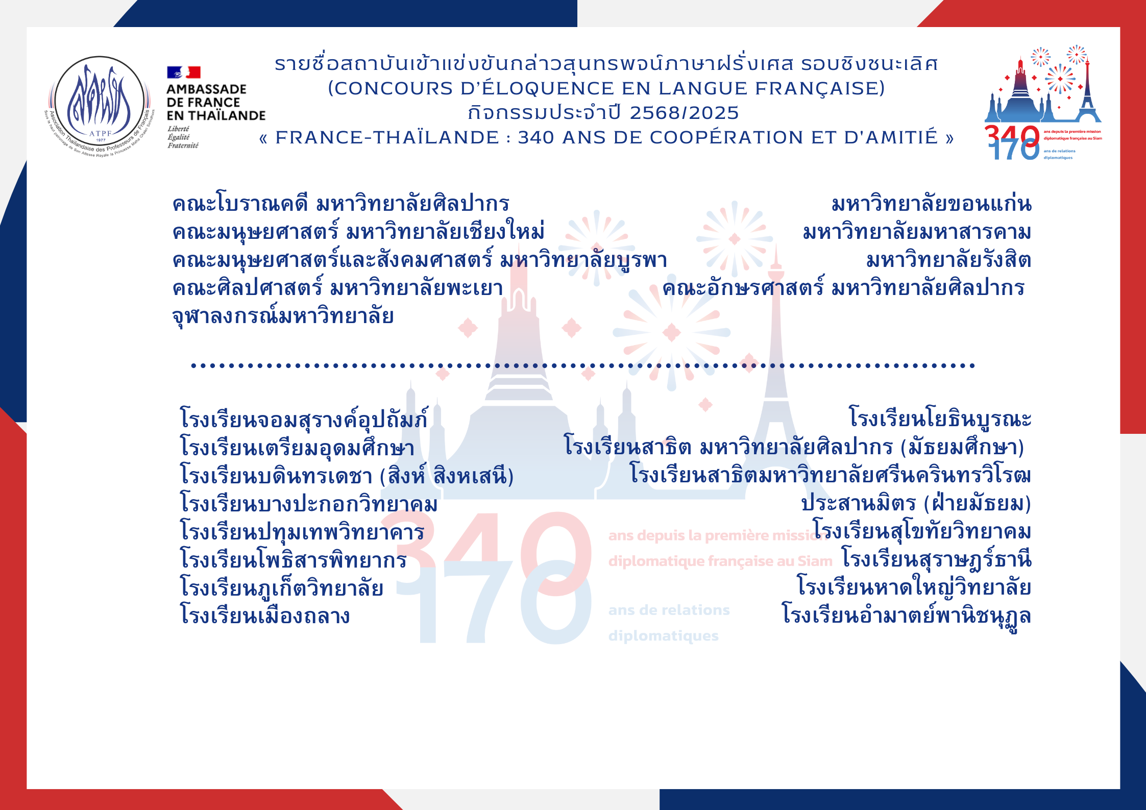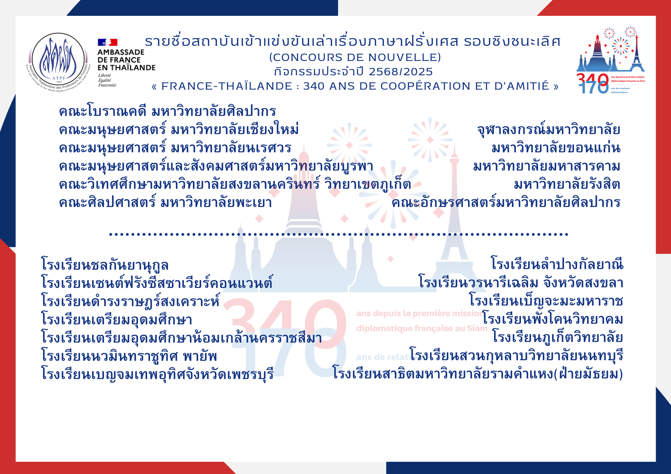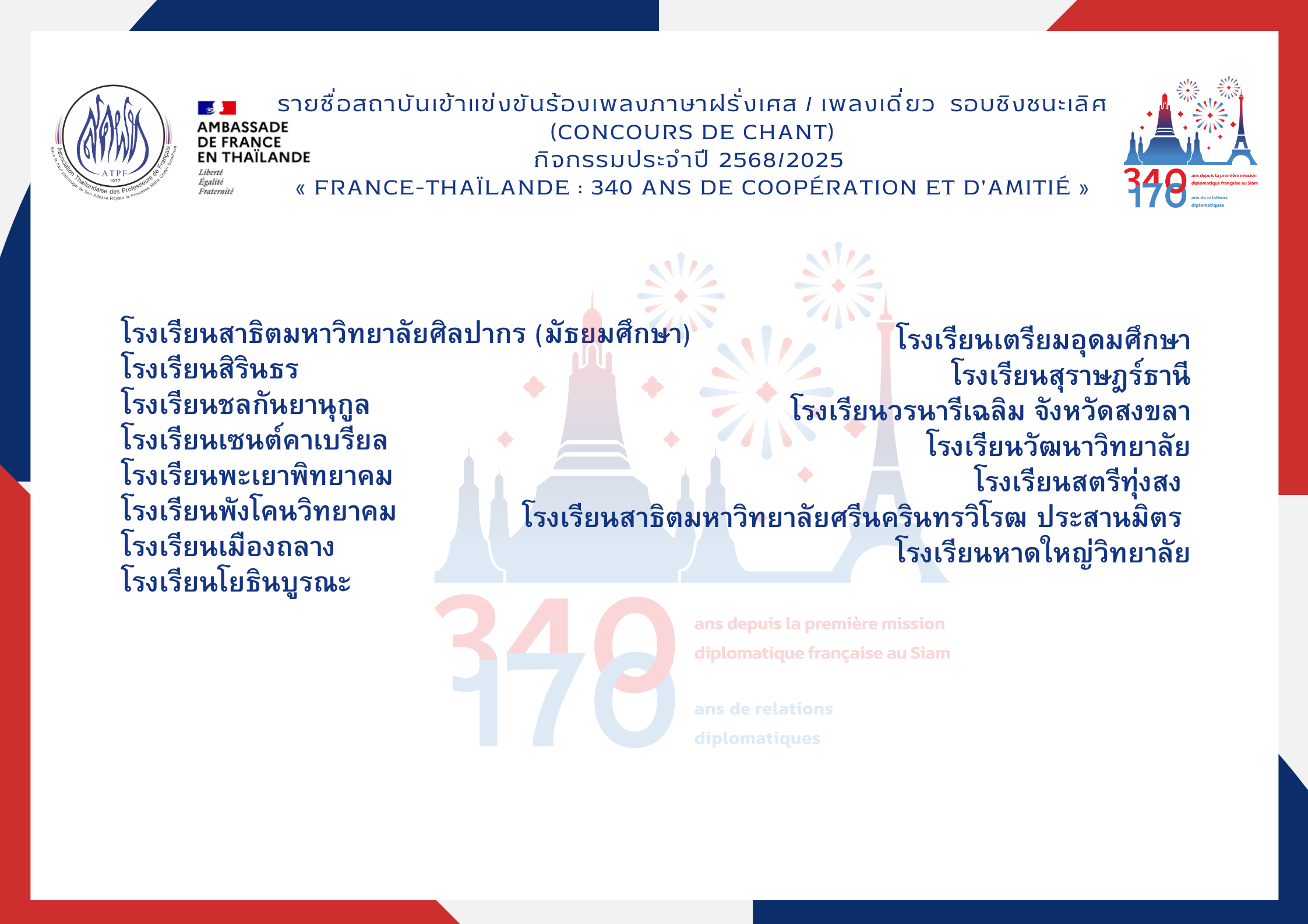 กิจกรรมประจำปี 2568 France-Thaïlande : 340 ans de coopération et d'amitié