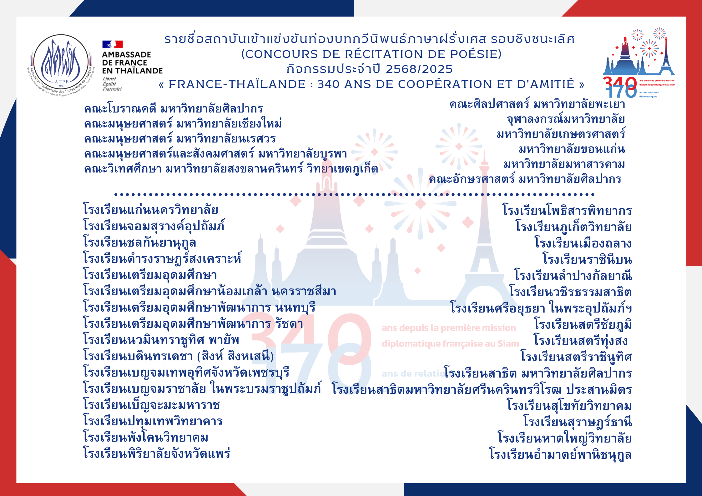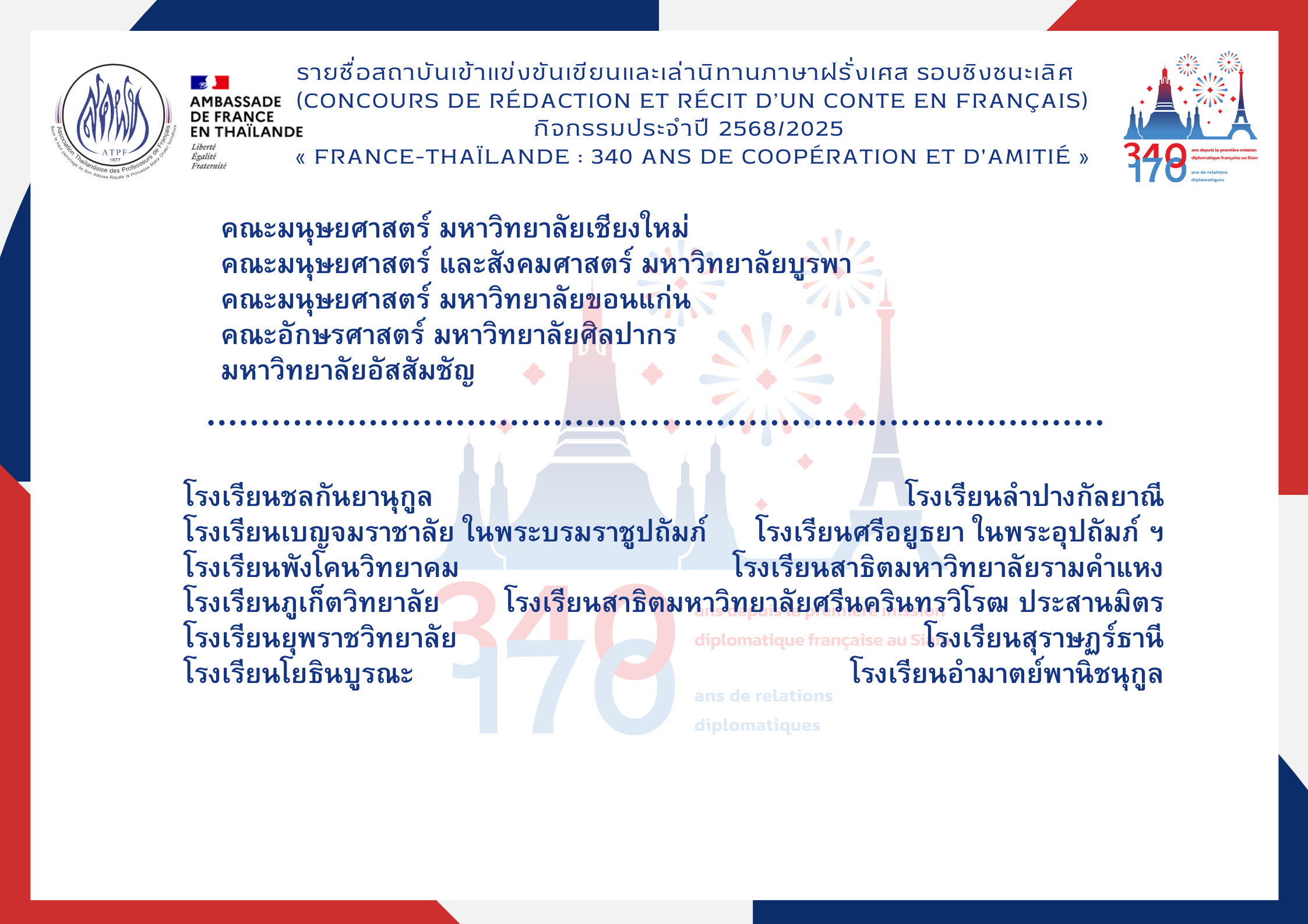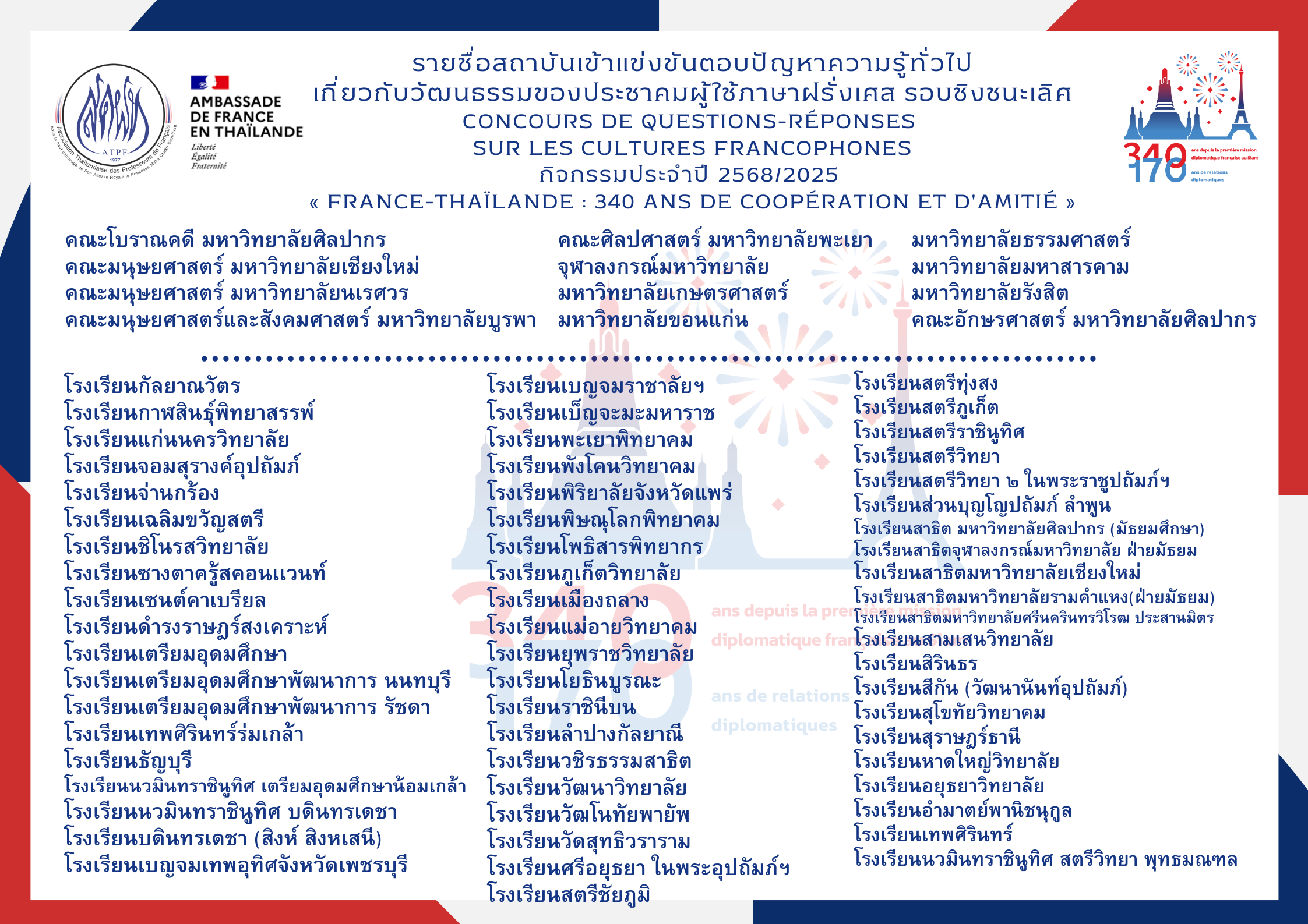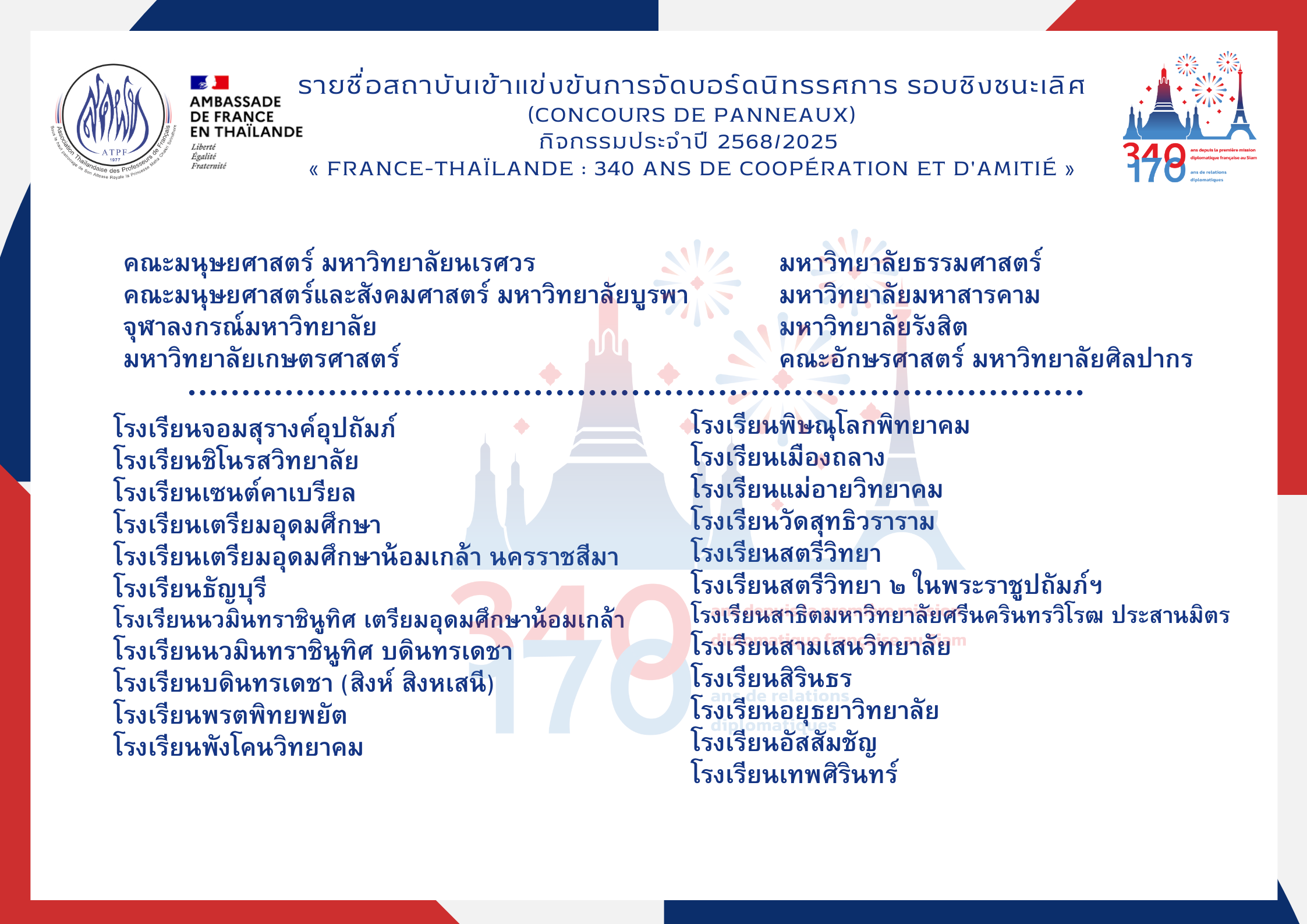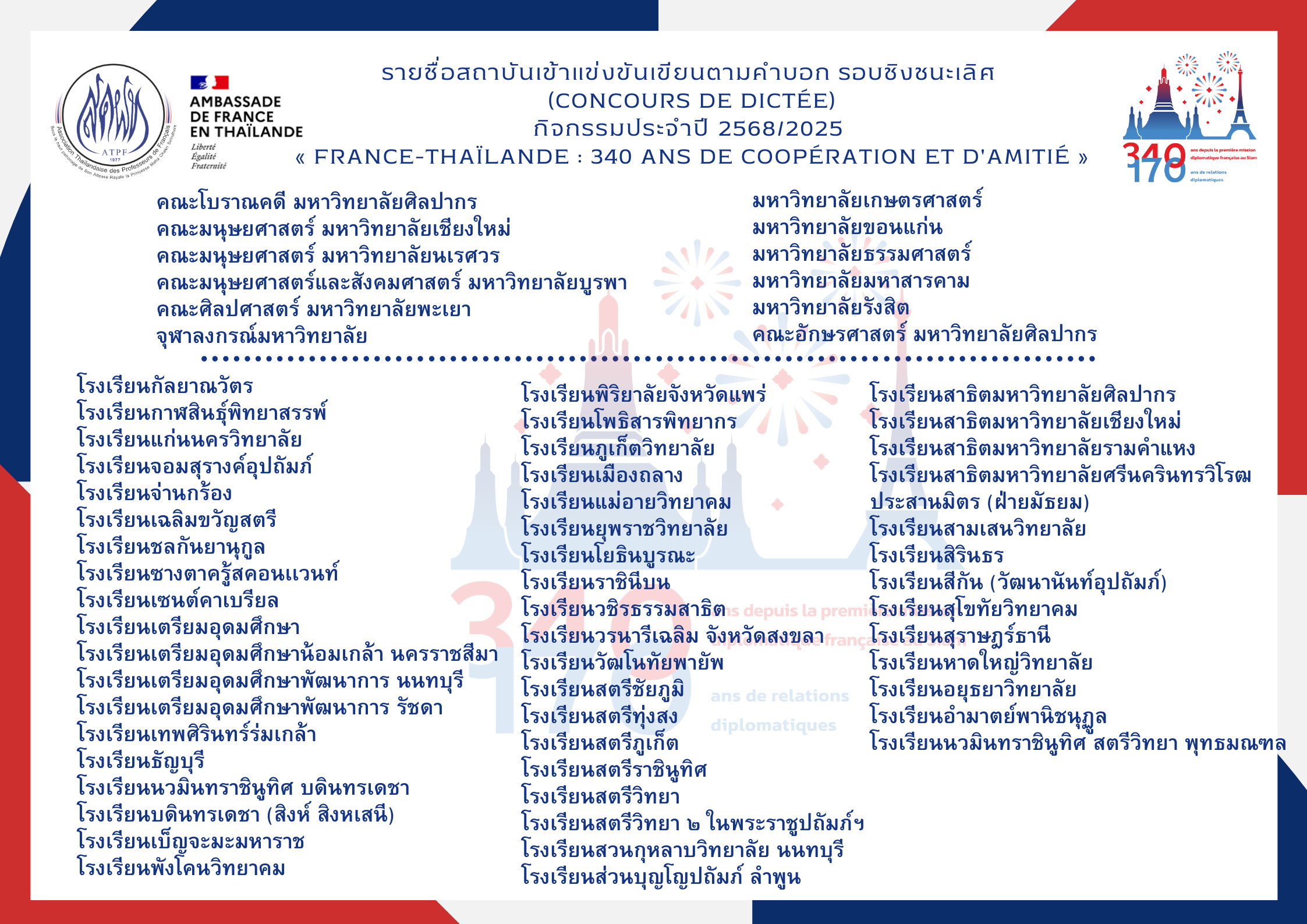กิจกรรมประจำปี 2568 France-Thaïlande : 340 ans de coopération et d'amitié