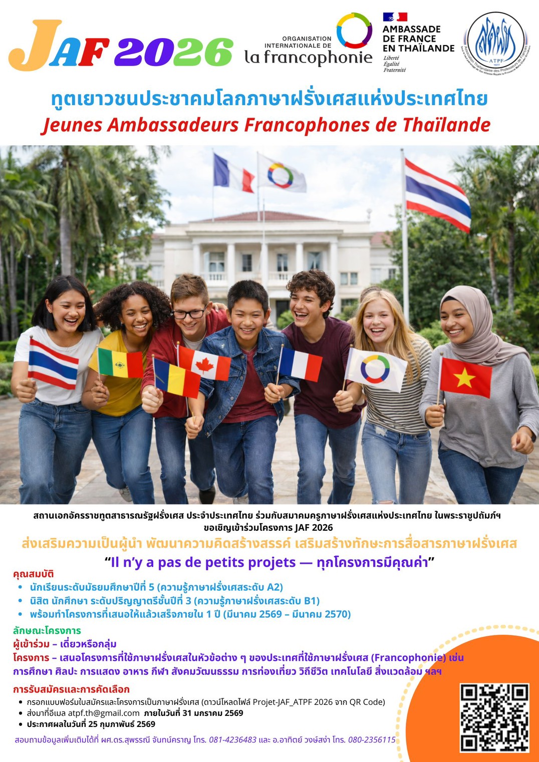 ทูตเยาวชนประชาคมโลกภาษาฝรั่งเศส แห่งประเทศไทย (Jeunes Ambassadeurs Francophones de Thaïlande – JAF 2026)