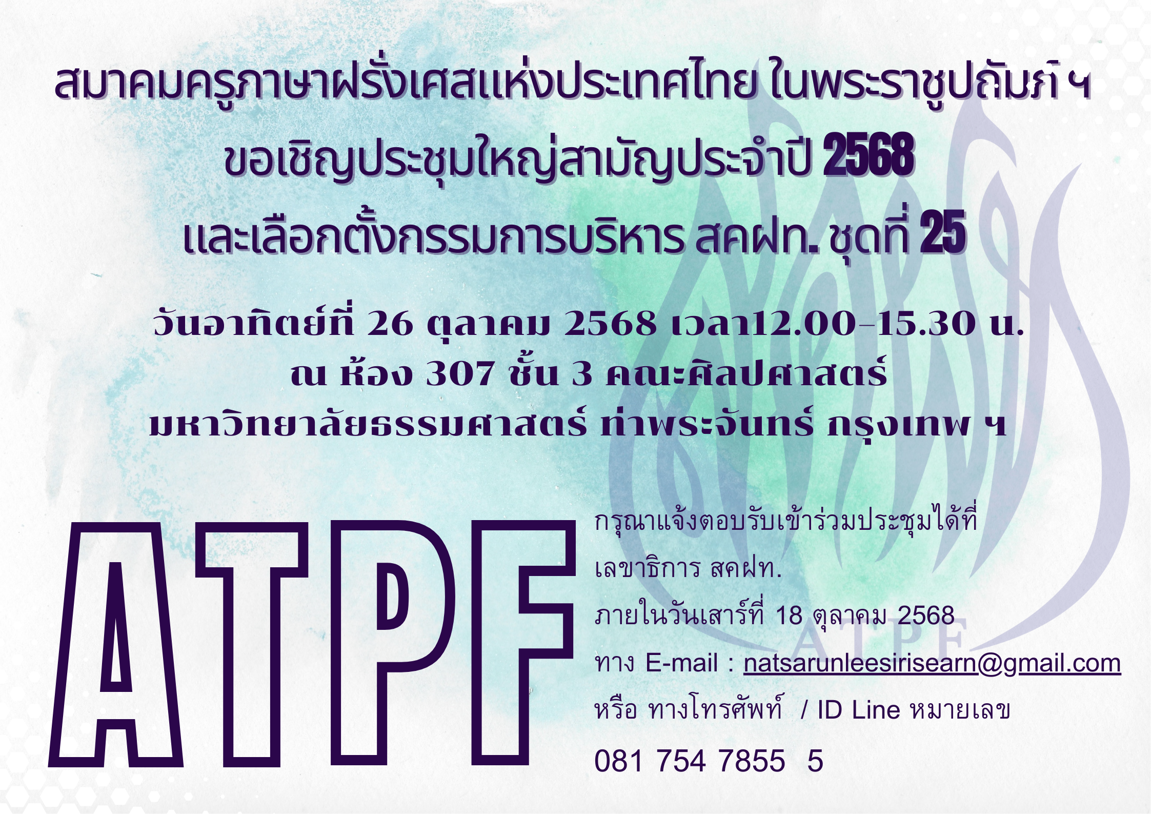 ขอเชิญประชุมใหญ่สามัญประจำปี 2568 และเลือกตั้งกรรมการบริหาร สคฝท. ชุดที่ 25 อ่านต่อ