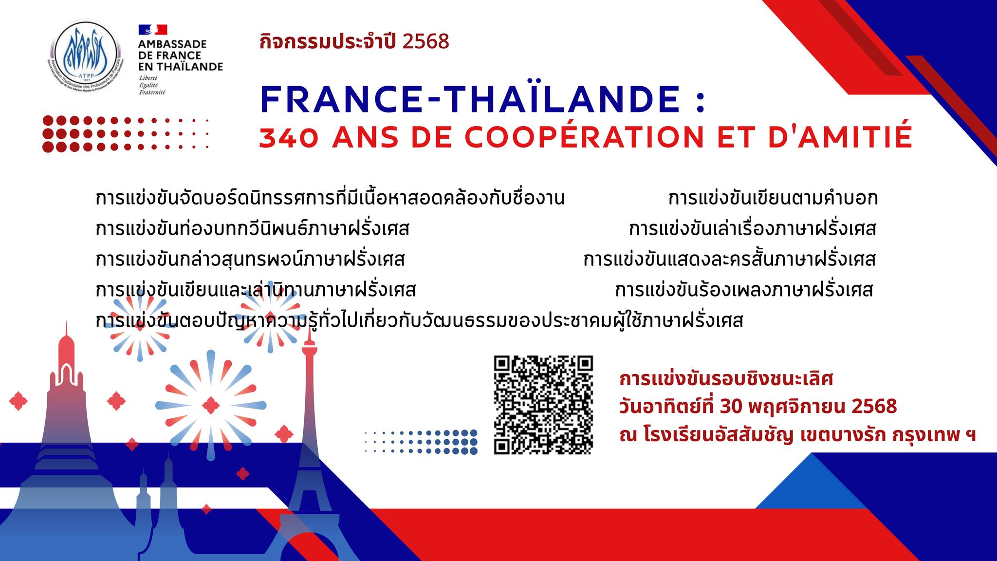 กิจกรรมประจำปี 2568 France-Thaïlande : 340 ans de coopération et d'amitié อ่านต่อ